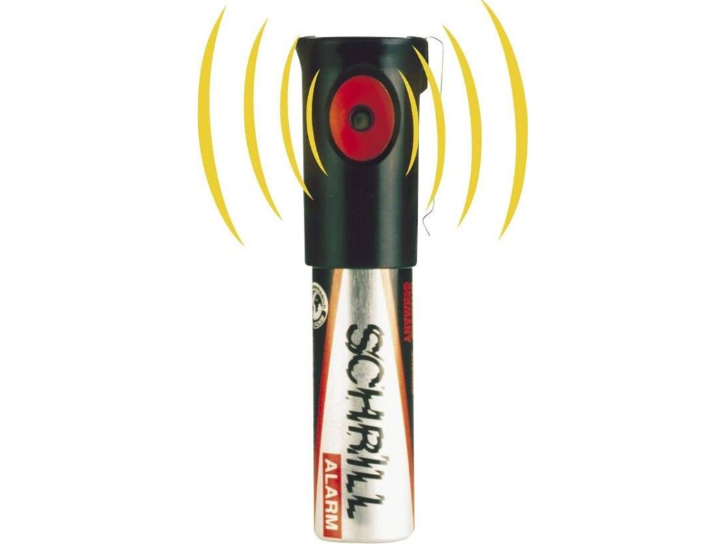 Vysoce účinný prostředek k upoutání pozornosti a přivolání pomoci, popř. k zahnání agresivních zvířat. Funguje na principu klasického spreje. Zvuk o síle 110dB a vysoké frekvence je velmi nepříjemný a bez krytí uší rukama nesnesitelný, díky tomu je doporučován také proti agresivním zvířatům, kteří mají od přírody velmi citlivý sluch. Použitím tohoto alarmu ve většině případů způsobíte dezorientaci a následný úprk útočníka.